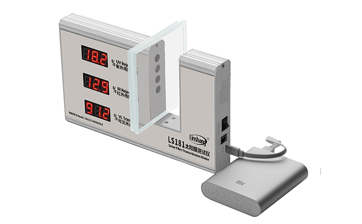 林上廠家供應LS181太陽膜測試儀,適用于汽車窗膜透光率檢測和紫外線紅外線阻隔率測試,平行光路設計,測試數據不受樣品放置位置影響,是一款高精度的汽車膜檢測儀。LS181太陽膜測試儀的測試原理是采用紫外光源,可見光源和紅外光源照射被測透明物質,感應器分別探測三種光源的入射光強和透過被測透明物質后的光強,透過光強與入射光強的比值即為透過率,用百分數表示。大多數的太陽膜,可見光標注透過率指標,紅外線和紫外線標注阻隔率指標,阻隔率=100%-透過率。LS181太陽膜測試儀直接測量和顯示紫外線的阻隔率,紅外線的阻隔率和可見光透過率,方便讀數和理解。
